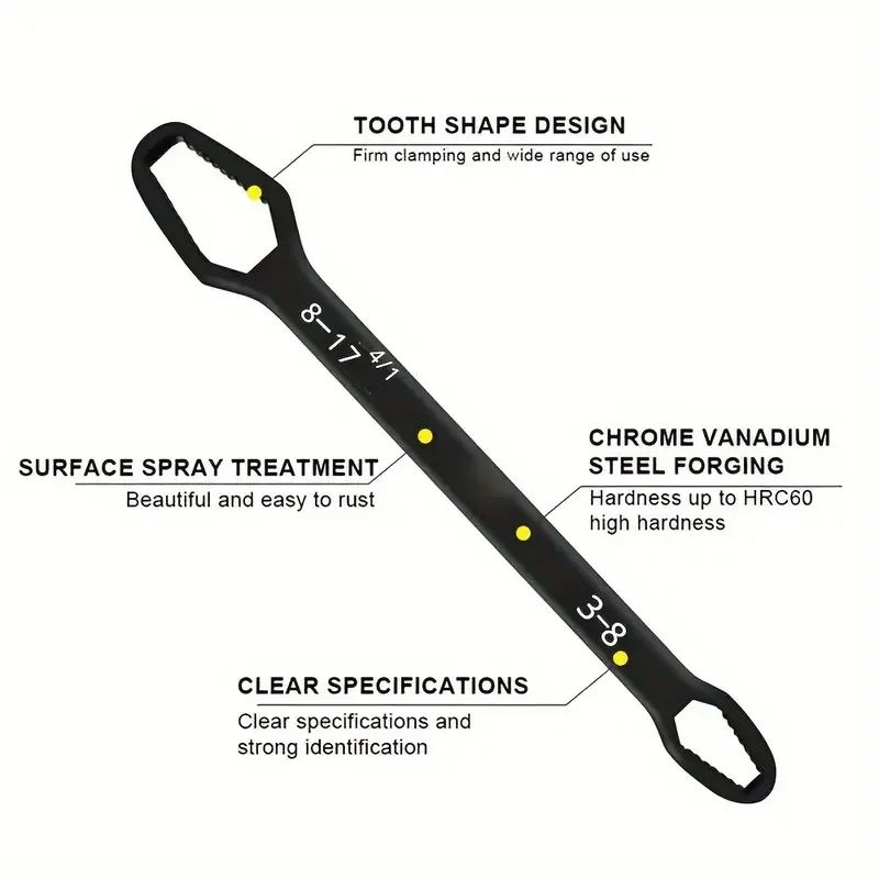 1. Double-ended self-tightening multi-function wrench, time-saving, efficient, convenient, industrial quality.