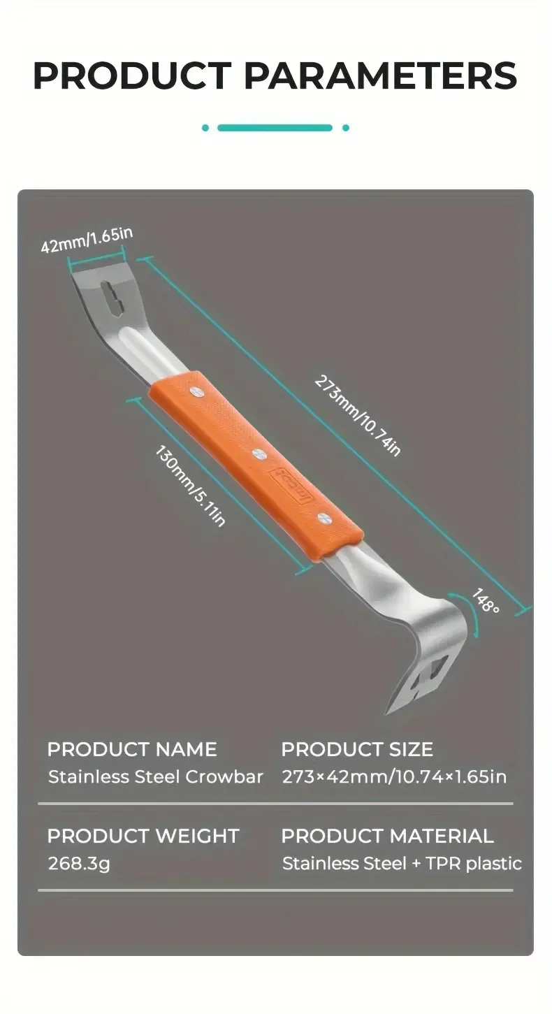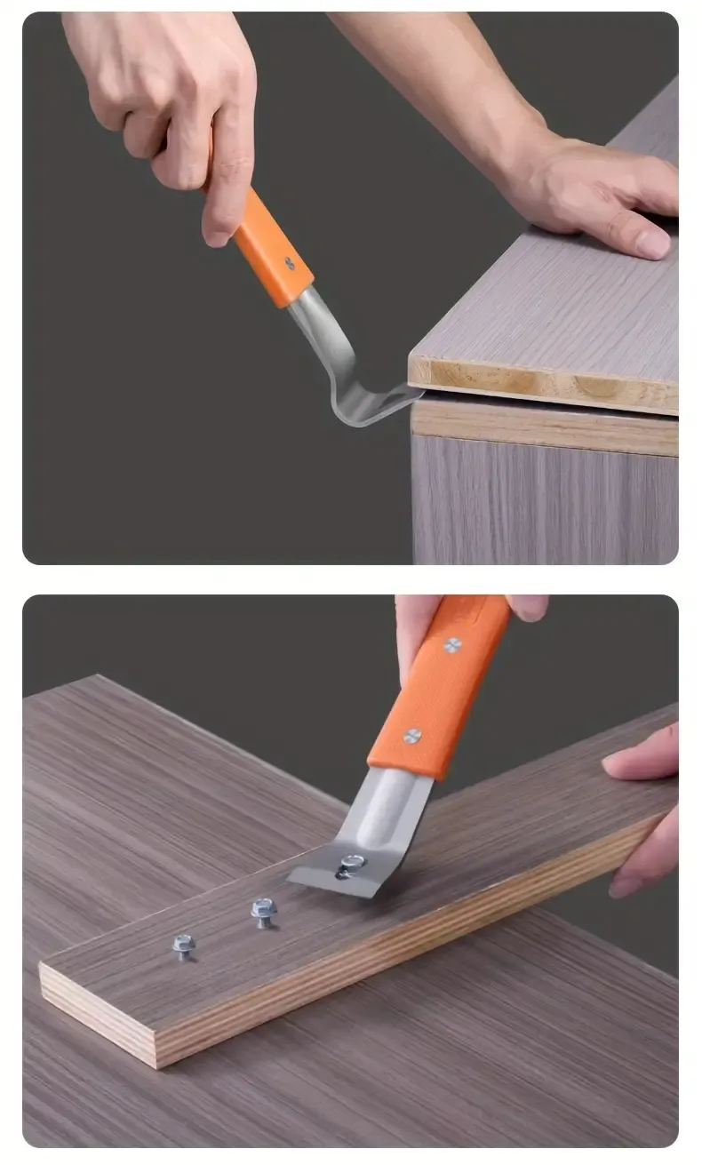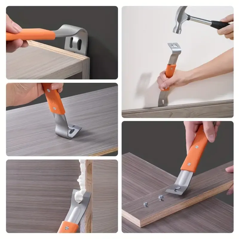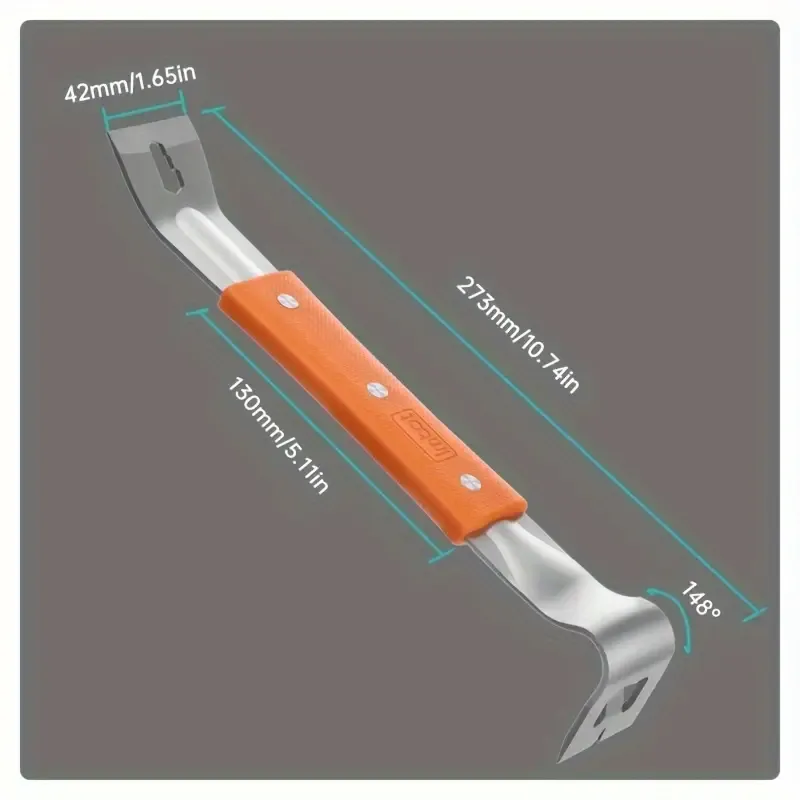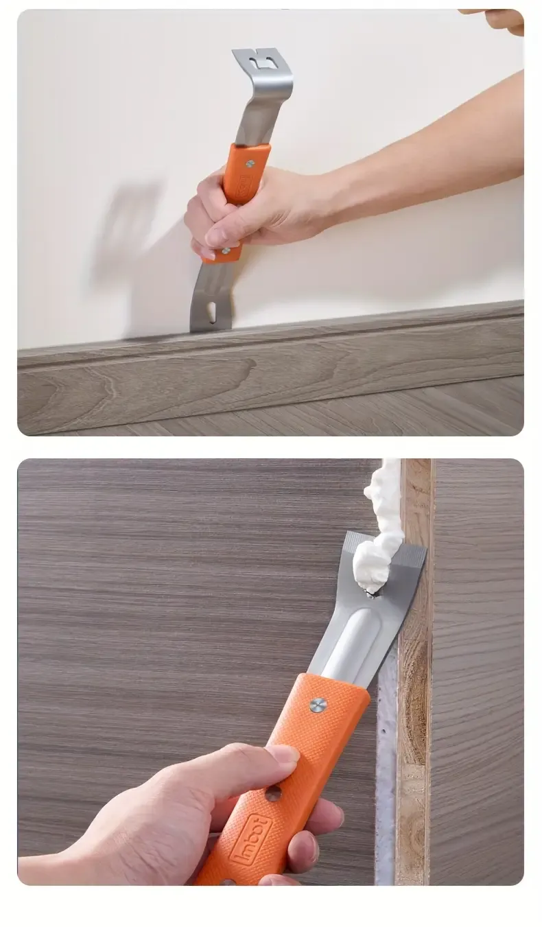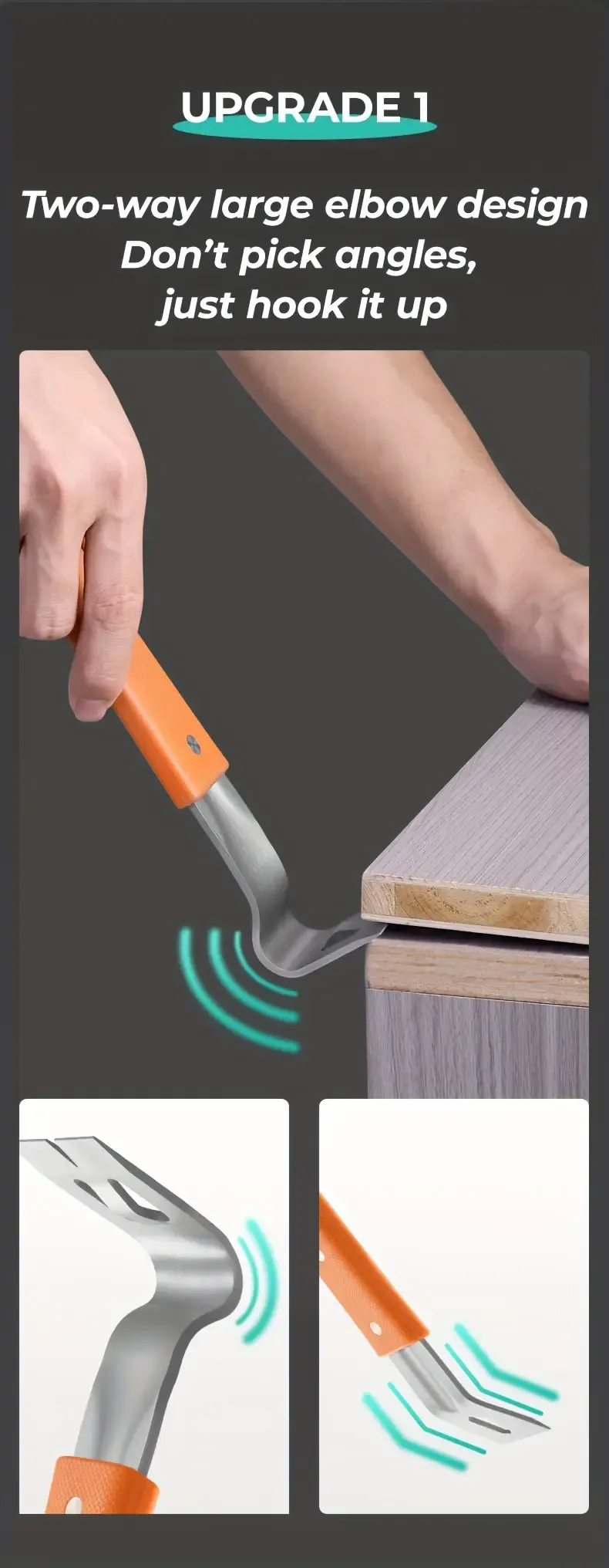 ✨Magic Pry Bar: Effortless Bending Design|Stainless Steel Woodworking Tool|Anti-Slip Orange Handle for Precision Repairs
