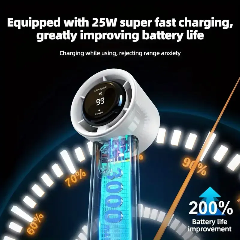【High Speed Hand Fan】 This mini fan handheld rotates at three times the speed of a regular fan.Powerful brushless motor with a speed of up to 15,000 RPM.This fan portable can relea even more powerful wind power.【Powerful Portable Cooling Fan】 Adopting the turbine circulation air guide system, the air blown out is not only powerful, but also very cool.As a portable fan for traveling, it can quickly cool you down on hot summer days, keeping your body at the most comfortable temperature at all times.【8 Hours Long Battery Life】 Depending on the needs,the hand fans can continue to work for up to 8h, with a minimum of 2 hours.Extra-large battery capacity is a guarantee of long battery life.【Exquisite Mini Fan Portable】 This personal fans is small and delicate, easy to carry as a pocket fan. The frosted texture shows off the premium. This fans handheld is a gift from the heart!