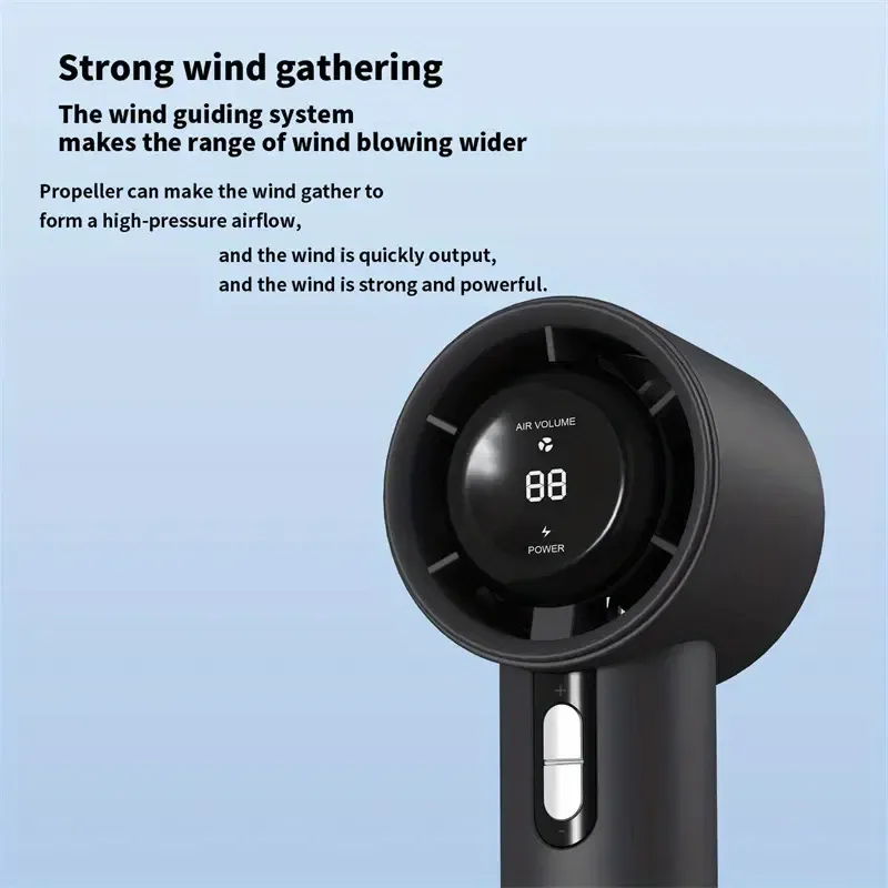 Mini Handheld Fan LED Digital Display 100 Winds Speeds USB Charge Portable Turbo Fan Power Super Strong Dormitory Outdoor Fan