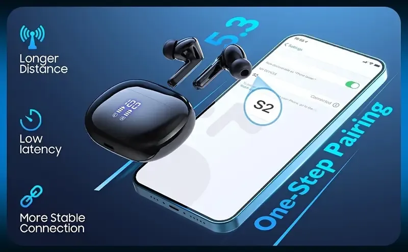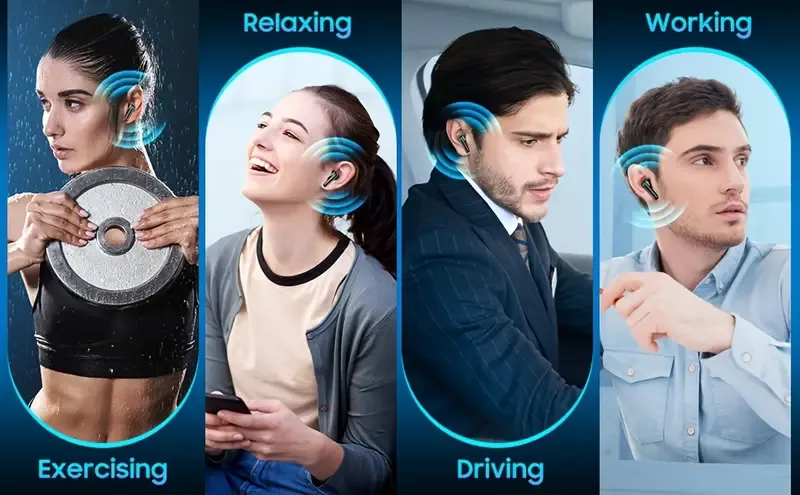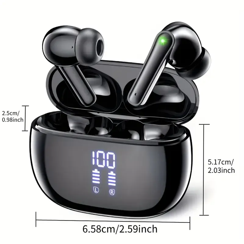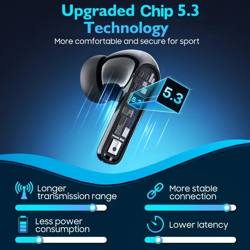 🔋100% Battery Display + Dual-Chamber Control|8H Playtime Wireless Earbuds|All-Day Fit for Sports or Work or Gaming