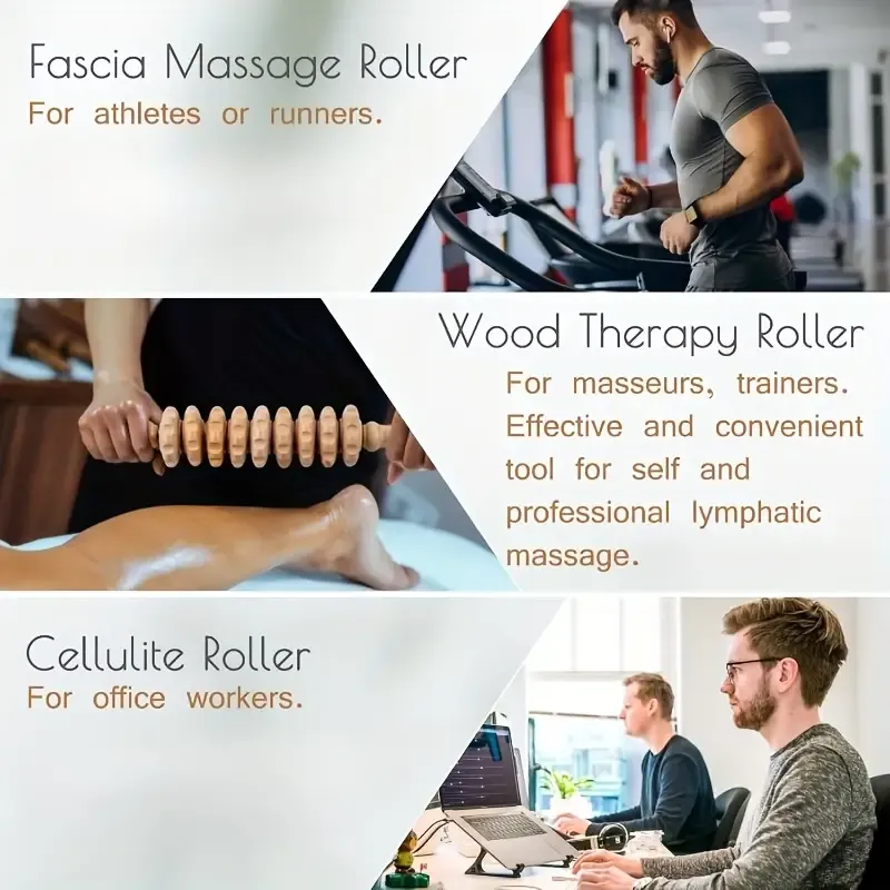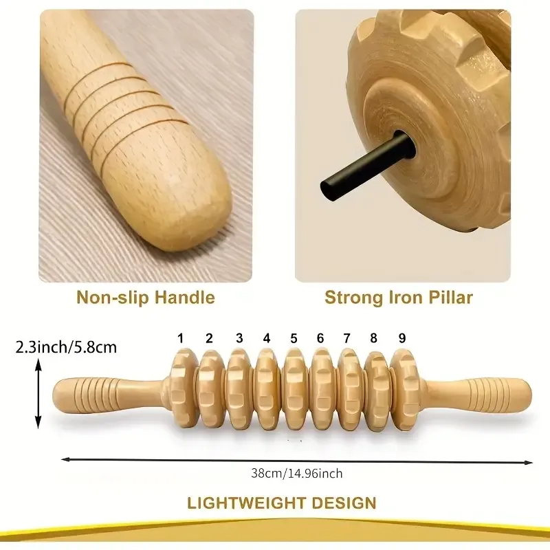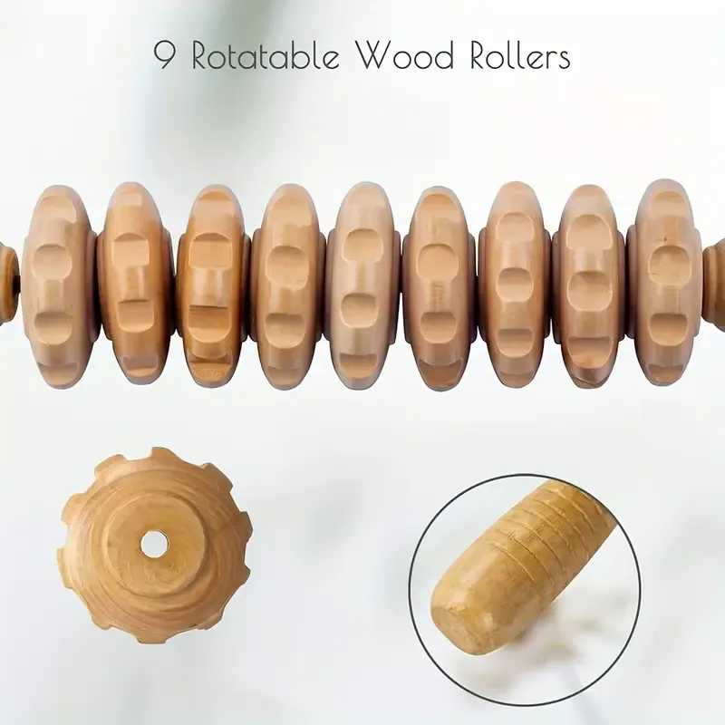🔥Natural Wood Massage Roller|9 Pressure Levels & Anti-slip Grip|3-Second Neck Relief|Office or Gym or Home Multi-scenario Use|14.96 Portable Slim Design