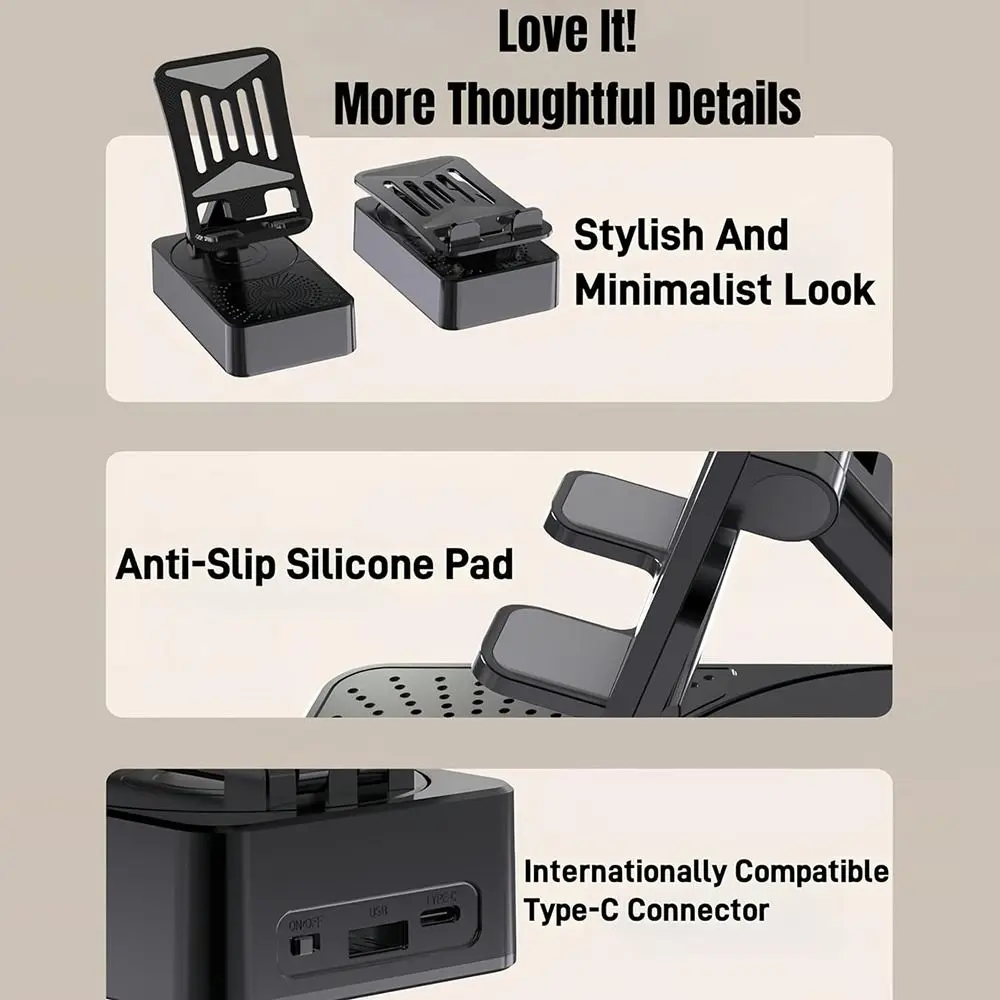 - High-Quality Sound: Equipped with an HD speaker, this phone stand delivers clear and powerful audio, enhancing your multimedia experience whether you're watching videos, listening to music, or making calls.