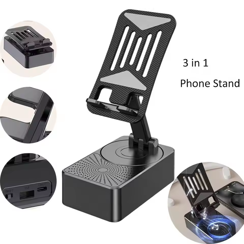- Multi-Functional Design: This 3-in-1 phone stand combines a high-definition speaker, a portable power bank, and a sturdy phone holder, offering convenience and versatility in one compact device.