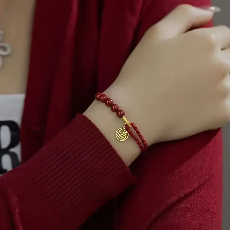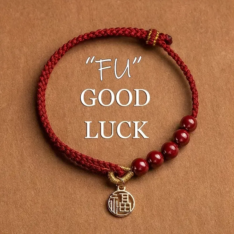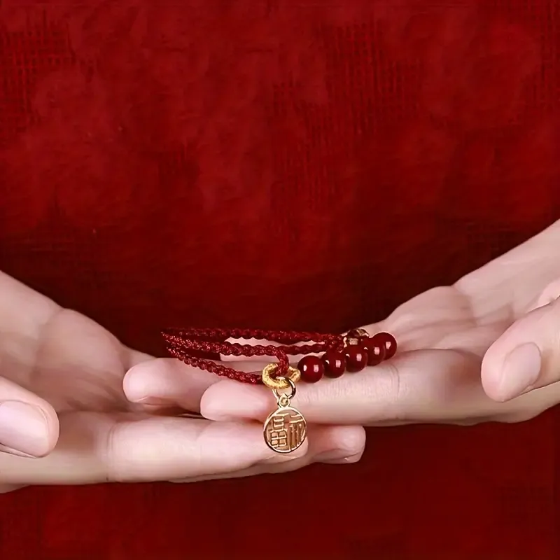 Lucky Red String Bracelet with Fu Charm | 5 Beads Auspicious Design | Festive Gift or Year of Destiny