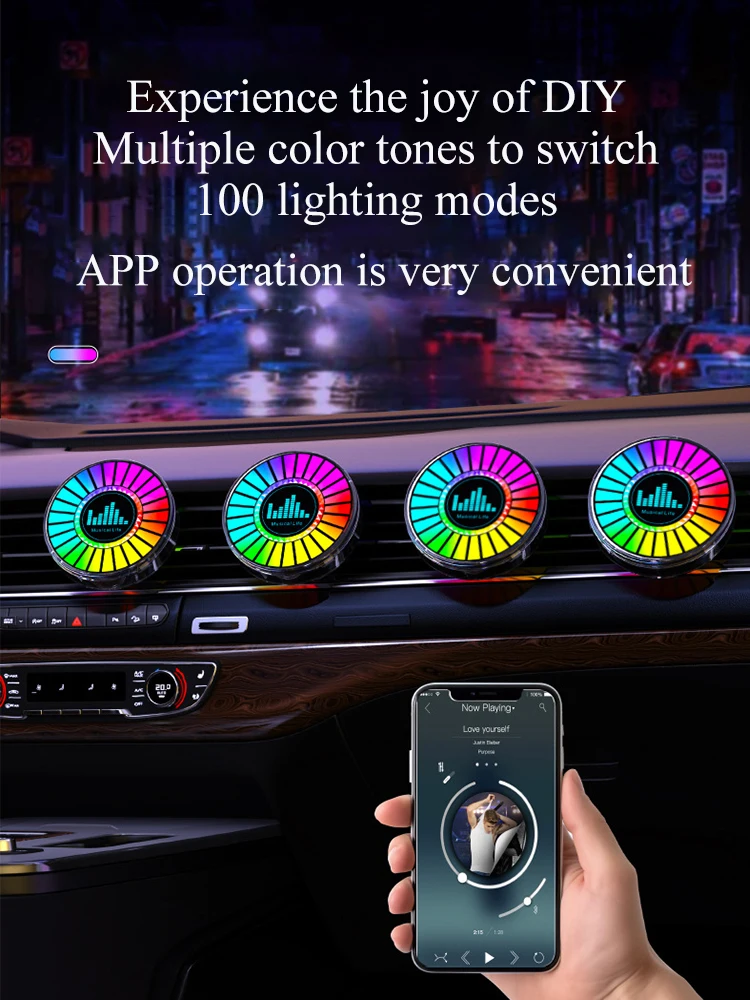 RGB Car Music Rhythm Light Rechargable Air outlet Led Sound Music Light With Aromatherapy Function Desktop atmosphere Light